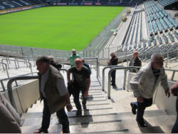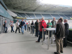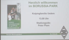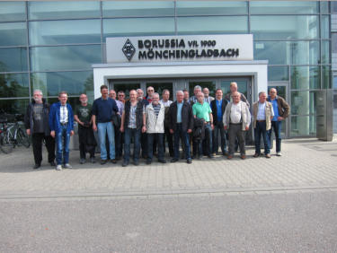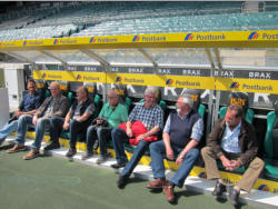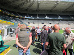 Um 11.00 Uhr trafen sich 25 Kolpingbrüder an der Kolpingstele zur Fahrt nach Mönchengladbach zum Borussia-Park. Um 13.00 Uhr wurden wir vom Stadionguide, Herrn Plum, hinter die Kulissen geführt. Die Führung ging durch das ganze Stadion, vom Presseraum über die Spielerkabinen durch den Spielertunnel zum Spielfeld, begleitet mit der "Fan-Hymne". Die eingefleischten Borussiafans konnten auf der Reservebank Platz nehmen. Es ging weiter zu den VIP-Räumen bzw. auf die VIP-Tribüne. Des Weiteren konnten wir die Tribünen der Radio- und Fernsehkommentatoren aufsuchen. Die Präsidentenlounge wurde ebenfalls besichtigt. Nach ca. 90 Minuten endete die tolle mit einigen Anekdoten gespickte Führung. Danach bestiegen wir den Bus und fuhren zum Ausflugslokal „Onkel Gustav“ im Hardter Wald. Dort verbrachten wir noch ein paar schöne Stunden, bevor wir um 19.00 Uhr die Heimreise antraten. Ein schöner Tag ging für die Männergruppe zu Ende.