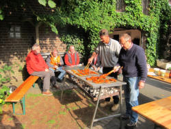 Auf mehrfachen Wunsch hin wurde diese Radtour geplant und durchgeführt. Um 13.00 Uhr trafen 18 Kolpingmänner an der Stele ein, um eine wunderschöne Radtour zu unternehmen. Es ging bei bestem Radfahrwetter ca. 30 km durch Wald und Wiesengebiete. Unterwegs wurde eine Pause eingelegt, wobei jeder eine Erfrischung zu sich nehmen konnte. Weiter ging es zum Kolpingbruder Gerd Hoffmann, wo bereits das Grilldreamteam Klaus und Ludger auf die Teilnehmer wartete. Wir wurden wieder, wie bereits in der Vergangenheit, hervorragend beköstigt. Insgesamt waren 22 Mitglieder der Männergruppe anwesend. Für einige Stunden konnten die Anwesenden wieder den Alltag vergessen. Diese tolle Truppe lebt im wahrsten Sinne „Familie“. Gemeinsam wird angepackt, wenn Not am Mann ist, bzw. Hilfe benötigt wird. Es macht allen riesigen Spaß, dabei sein zu können. Spät abends verabschiedeten sich die Männer bis zum nächsten Treffen. Danke nochmals an Gerd Hoffmann für das Entgegenkommen sowie bei den Helfern für die tatkräftige Unterstützung.