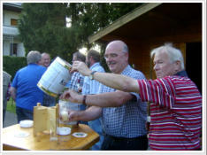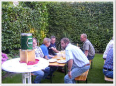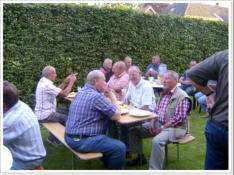 Für die Kolpingsfamilie ist das partnerschaftliche Miteinander der Generationen ein wichtiger Bestandteil des Gemeinschaftslebens. Hierin erfahren wir Bereicherung, Annahme und Ansporn. In der Kolpingsfamilie kann sich jede/r mit seinen / ihren Faehigkeiten einbringen und wird durch das Miteinander beschenkt. So waechst Vertrauen und Zutrauen. Einander Halt und Unterstützung geben, Solidaritaet ueben, Frohsinn und Geselligkeit pflegen sind uns wichtige Grundhaltungen. Letzteres konnten die Mitglieder der Maennergruppe am Freitag, den 31.07.2009 wieder erleben. Bei unserem Kolpingbruder Jucki Bornheim wurde ein Grillabend abgehalten. Bei traumhaftem Wetter fanden sich 24 Maenner im Garten zu einem schoenen Abend ein. Die Grillmeister Klaus Wuerzler und Ludger Bongers konnten mit sehr leckerem Gegrilltem aufwarten Es blieben keine Wuensche offen. U. a. wurde über alte Zeiten geplaudert. Zu spaeter Stunde holte Jucki die Quetsche (Akkordeon) heraus und es wurden Heimatlieder gesungen. Alle waren der Meinung, dass dieses wieder ein gelungener Abend war.